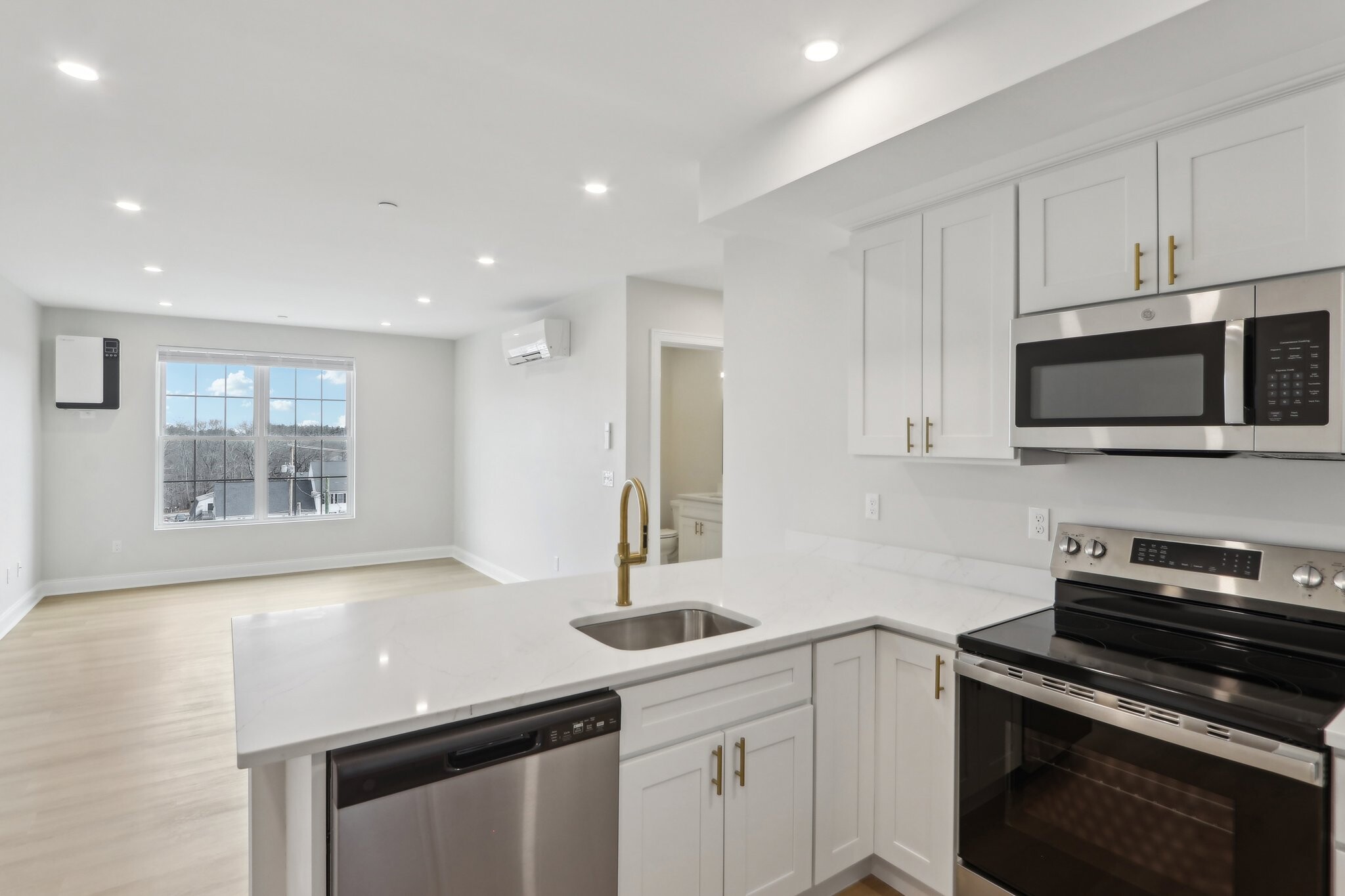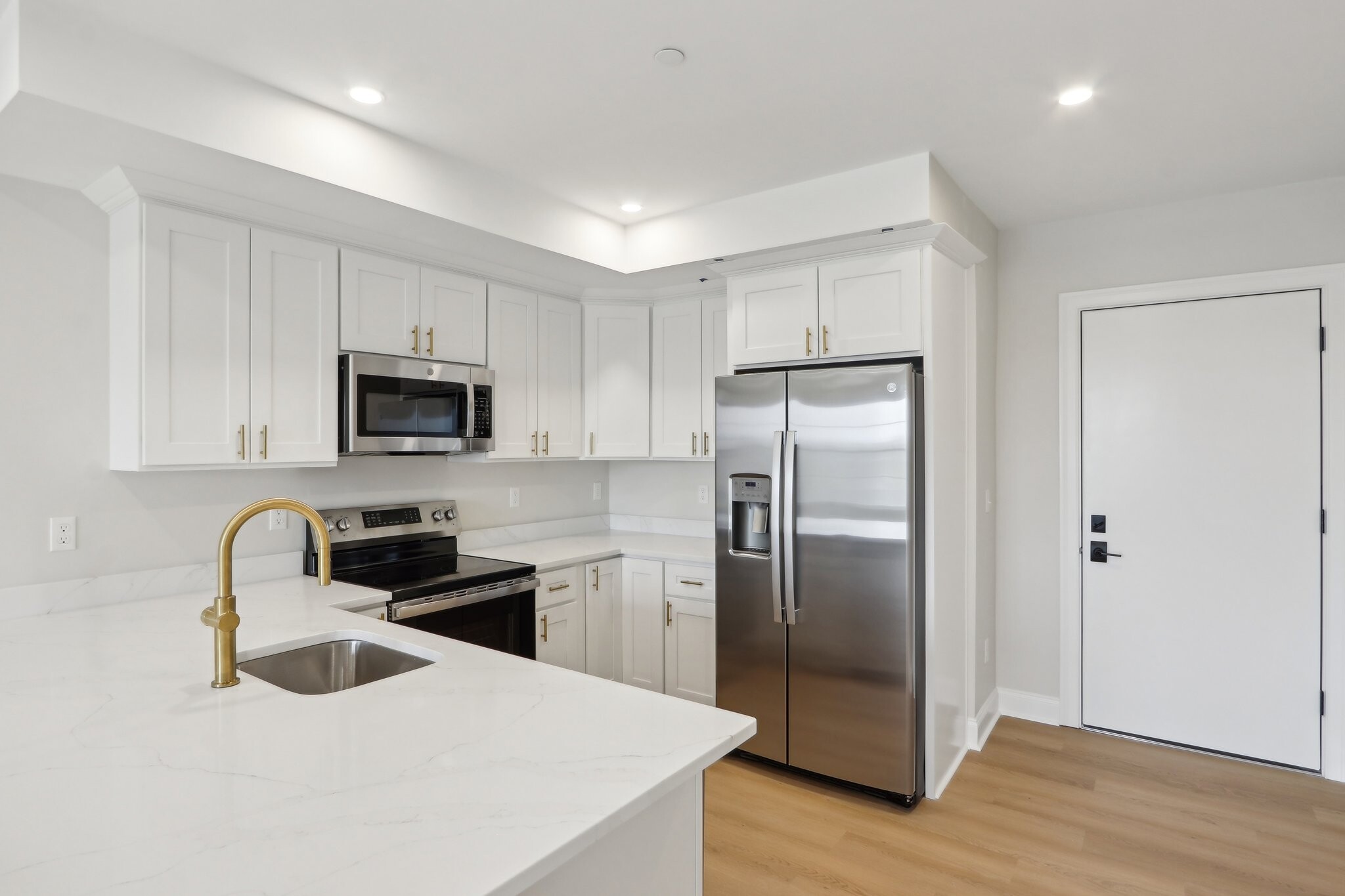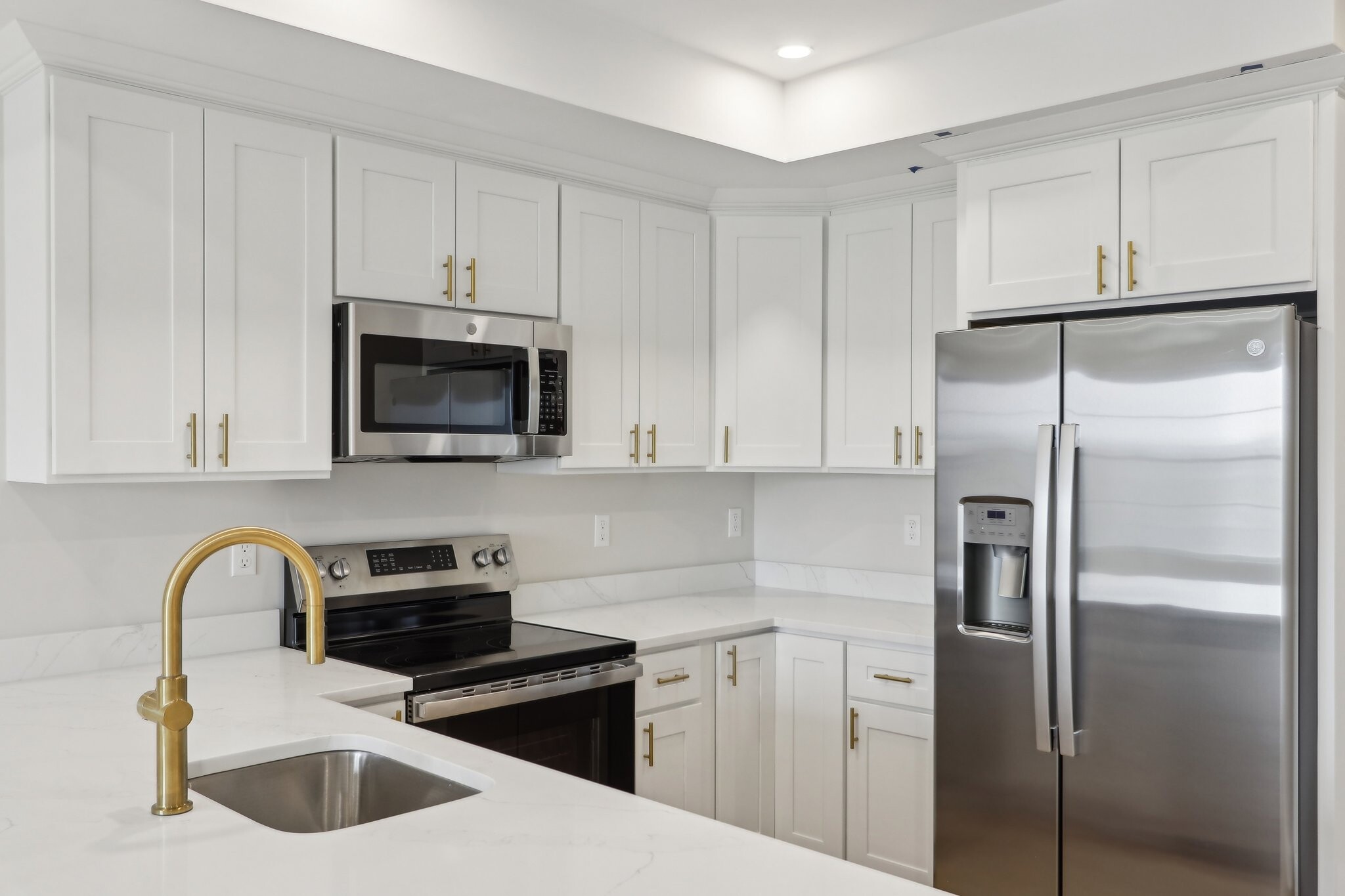 • Stainless steel appliances, including a full-size refrigerator, oven, microwave and dishwasher